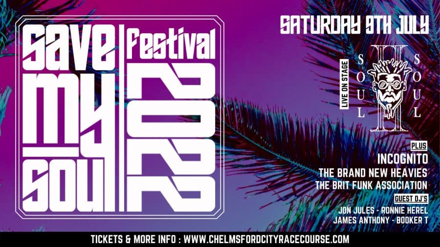 Get ready for the hottest new festival in Essex with ‘Save My Soul’! Join us for this sensational summertime festival as we bring iconic groups including Soul II Soul, Incognito, The Brand New Heavies and The Brit Funk Association and loads more to Chelmsford City Racecourse for one of the best events of the year.