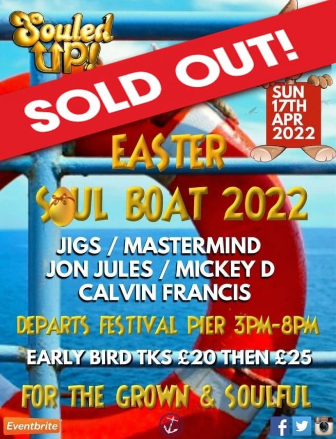 Buy TicketsSouled Up Returns In 2022 For The Grown & Soulful With The Easter Soul Boat On Board The Pride Of London On Easter Sunday 17th April Departing Festival Pier At 3 pm Returning At 8 pm So Get Your Bunny Ears And Soulful Dancing Feet Ready As We Cruise The Thames With An Amazing Line…